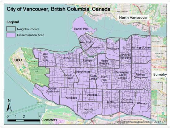 41]. However, the high regression residuals are concentrated in the northern area of the city, including Stanley Park and the downtown area. Moreover, as seen from the local R