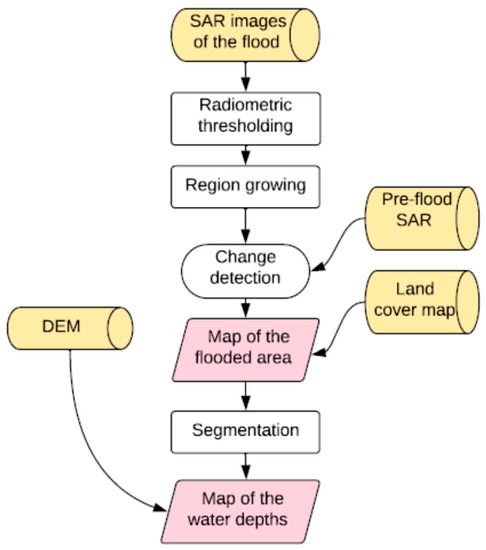 In this light, the flood mapping procedure utilized in this study is basically a semi-automatic classification in which the integration of different rules is performed based not only on SAR but also on ancillary data, such as knowledge of land cover and information derived from a reference pre-flood SAR image.
