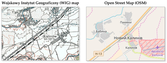 In the research, WIG and OSM maps were used to compare pre-war and contemporary names in this part of test area, which covers the territory of current Poland. It was noticed that 177 out of 215 names of the Polish side of the current border, (more than 82%) have not changed. Only 25 names are completely different between Polish (before 1939) and Polish (present OSM) maps (just over 11%, e.g., Dmytrowice changed to Olszynka). Some names have been changed by abbreviation or elongation (respectively: two and four names, e.g., Parcelacja Boratyn changed to Parcelacja, Widna changed to Widna Góra), and, finally, seven places do not exist anymore (e.g., Stary Kalinów). A list of changes in Polish names together with examples is presented in Table 1.