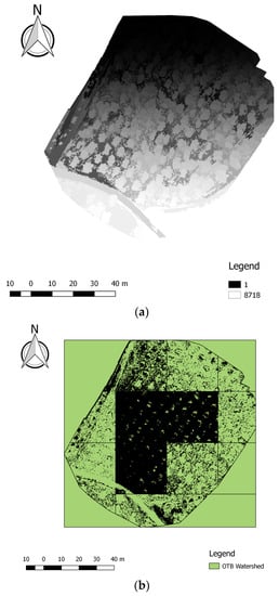 Remote sensing techniques provide useful information for agricultural management enhancing the reliable automation of mapping procedures [1]. In recent years, Unmanned Aerial Vehicle (UAV) imagery has allowed a new way of getting geographic information from remote sensing data [2]. UAV technology provides several advantages compared to a manned aircraft such as: (i) significantly lower qualification requirements for UAV pilots; (ii) allows for mapping small areas, resulting in very high spatial resolution (VHR) images, which are ideal for detecting small objects; (iii) low cost acquisition; and, (iv) it can couple different sensors [2]. UAVs are increasingly used in different contexts and in several research areas, such in cartography, environmental studies, cultural heritage, civil engineering, forestry, and agriculture/precision agriculture [3,4,5,6,7,8]. Therefore, when considering UAV imagery, it is possible to acquire information more efficiently and inexpensively [9]. UAV imagery have been used to estimate metrics from trees in several crops or farms, which can be of interest of farmers in order to obtain a better planning of the irrigation process, helping in the forecast of the production date and climate change effects as a consequence of deforestation and degradation of forests, which leads to global warming, precision forestry, forest management planning, and biomass estimation [2,10,11,12,13]. Most of the work conducted with UAV data has been related with forest areas [11,12,14,15,16,17,18,19]. However, in the field of agriculture crops, it is relevant to study the geometric characterization of trees and plantations. This is a complex task, being particularly important to understand the tree growth and productivity [1,9,13,20,21,22]. In the field of precision agriculture, several image processing methods for automatic detection and delineation of individual trees were already implemented [1]. The information regarding tree crown areas of a specific crop is the key in the study of ecological value and ratio of the occupied area by that crop [9,15,23]. Traditionally, tree counting has been performed manually based on field information and statistical data, being an expensive process, time consuming, and a tedious task subject to several errors [13,14,22]. Satellite, manned aircraft, or UAV imagery can be used to obtain these data. Therefore, the implementation of automatic processes is crucial to extract information and provide forest or crops inventories from remote sensing data [2,13,22].