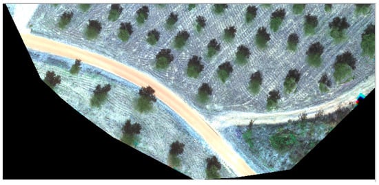 The image corresponding to each study case was obtained with a rotary-wing UAV (3DR Solo) with a MicaSense RedEdge camera which is composed by five bands: Red, Green, Blue, Red edge, and Near-Infrared (NIR). The coordinate reference system adopted was Universal Transverse Mercator (UTM) Zone 29 North—World Geodetic System 1984 (WGS84; EPSG:32629) for olive crop image (with a spatial resolution of 2.8 cm), and European Terrestrial Reference System 1989 (ETRS89) Portugal Transverse Mercator 2006 (PTTM06; EPSG:3763) for eucalypt (with a spatial resolution of 3.6 cm) and vineyard images (with a spatial resolution of 5.2 cm). It was performed one single cloud-free flight to each study case. The flight height to olive crop was 50 m, for eucalypt was 120 m and for vineyard was 80 m. After, for each image, the NDVI was computed using Red and NIR bands [36].