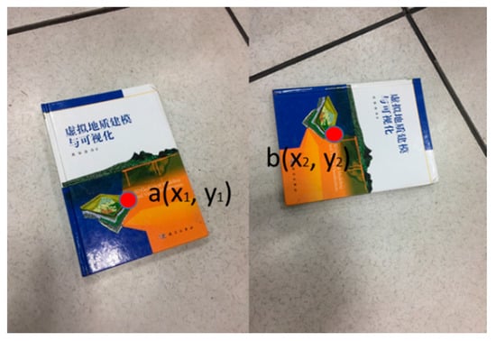 We captured two images from different perspective. The red dot represents the same physical point in the two images. With the homography matrix between two images, we can easily figure out the point b value according to point a.