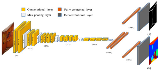 Structure of the FCN-VGG16 with two output branches. (a) Rough layout; (b) Geometric context.