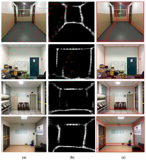 - Hedau, V.; Hoiem, D.; Forsyth, D. Recovering the spatial layout of cluttered rooms. In Proceedings of the IEEE International Conference on Computer Vision, Kyoto, Japan, 29 September–2 October 2010. [Google Scholar]