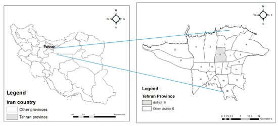 Figure 4 shows the geographical position of the study area. According to the latest statistics obtained, the population of District 6 is about 237,292 people, of which 119,421 are men and 117,871 are women [27].