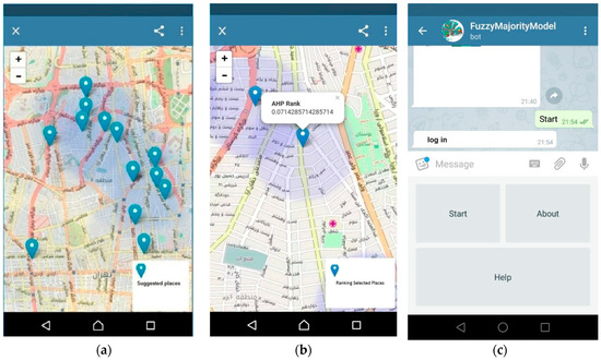 The first part of the system is related to individual decision making. The user clicks on the bot name, @FuzzyMajorityModel. The user chooses the start option to communicate with the robot. In the next step, the user must enter personal information to log on to the individual decision. Then, user should select a fixed option scenario. A fixed option in the scenario is the number of places offered in the study area, and will be displayed in the form of a web-based map to the user.