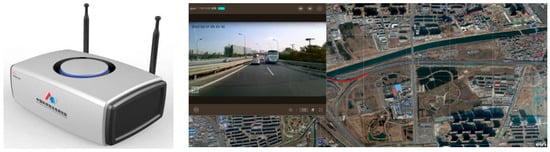 The test was carried out in Beijing, Tianjin, and Shijiazhuang individually during the periods of 10:00:00 to 12:30:00 (UTC) on 22 October 2017, 15:40:00 to 17:00:00 (UTC) on 24 October 2017 and 13:00:00 to 14:40:00 (UTC) on 26 October 2017. The maximum speed of the experimental vehicle was about 80 km/h. The experiment routes in these three cities included the urban, expressway, and flyover environment and are individually displayed in Figure 12. The distances of these three routes were about 23.5, 34.2, and 26.1 km, respectively.