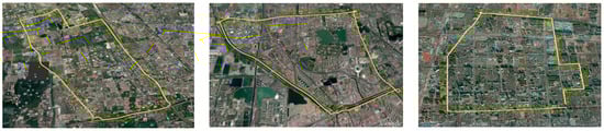 The road selected for our experiment in Beijing (left), Tianjin (middle), and Shijiazhuang (right).