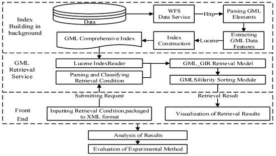 With the implementation of the Geography Markup Language (GML) International Standard (ISO 19136-2007), the popularity of Web Feature Services (WFS) has increased. Accordingly, the GML data generated by artificial or spatial services have surfaced on the Internet and have been extended to many data specifications, such as the Keyhole Markup Language (KML), CityGML, and WFS. They are used for many kinds of applications such as indoor navigation [1], location-based services, and other aspects. The data mainly exist in two forms for practical applications. The first is document-type GML data stored locally in the form of text, such as the Aeronautical Information Exchange Model (AIXM) [2] based on GML data, the urban 3D modeling based CityGML [3], etc.; the second is service-type GML data stored on the web server in the form of data services, such as WFS and Web Feature Gazetteer Services (WFS-G). These data specifications are derived from GML/Extensible Markup Language (XML) and have complex nested relationships between elements. The data includes rich text, spatial information, and significant structural information. They have typical semi-structural features, and then GML or similar to GML data has been generated. These spatial data exist in the form of GML documents. With the advent of GIS big data, these resources have increased dramatically and been more complex. In the process of geographic information retrieval (GIR), the complexity of geospatial data is also a problem [4]. Existing retrieval methods have made great achievements in the field of GIR. However, for these resources, there is a lack of methods and models suitable for GML data; we need to provide new methods for GML data, and further studies are essential.