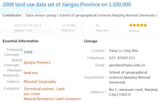 The National Earth System Science Data Sharing Infrastructure (NESSDSI, http://www.geodata.cn) is one of the national science and technology infrastructures of China. It provides one-stop scientific data sharing and open services. As of the 15 November 2017, NESSDSI has shared 15,142 multiple-disciplinary data sets, including geography, geology, hydrology, geophysics, ecology, astronomy, and so on. The page view of the website has exceeded 21,539,917.