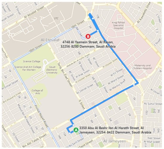 23] implemented an indoor routing system using the method in three-dimensional spaces in order to determine the shortest route in general and the closest shortest route, which is the shortest route that will not pass through the open space (to avoid some environmental conditions such as rain or sun). In [