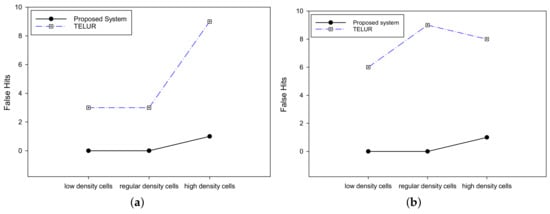 Figure 12a shows the number of false hits that result from performing 18 routing cases in each density environment. As is evident, [