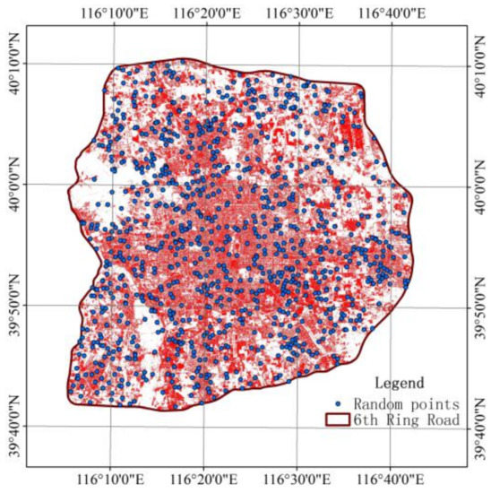 To quantitatively verify the rationale of the result, we first make the plausibility check based on nighttime light data. The values of nighttime light data in urban built-up area are always higher than those in rural areas. We present the statistics information of nighttime light data for inner part and outer part of the extracted Beijing built-up area boundary in boxplots and compare the distribution difference of nighttime light data [41]. Since rural landscapes are blended with urban landscapes at the rural-urban fringe, rural settlements are easily misclassified as urban impervious surfaces. We classified the impervious surfaces into two groups: rural settlements and urban built-up area. Then, we acquired 1000 real sample points from Google Maps, which belong to impervious surfaces (Figure 8). We used the sample points to assess the accuracy of the extracted Beijing built-up area based on the confusion matrix [38].