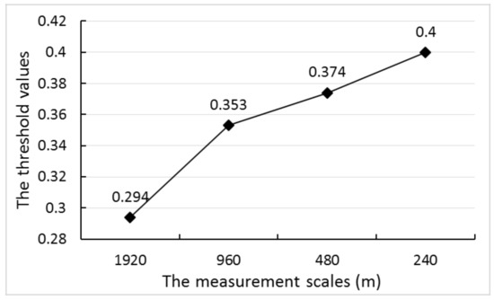 The tendency of the threshold values with the measurement scales of the hexagonal vector grids.