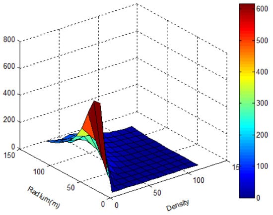 We conducted the experiments with different input parameters. The results are listed in Table 2, which lists the quantities of clusters generated by the DBSCAN algorithm. Figure 5 provides a direct representation of the varieties of the clustering as a function of -radius and -density. Two tendencies can be seen in Table 2 and Figure 5: