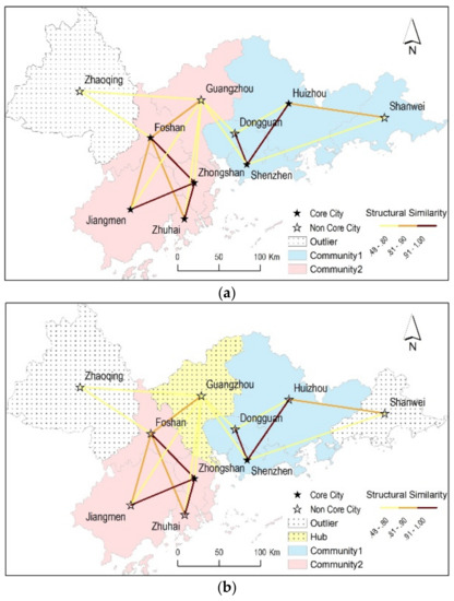 - Chen, Y.; Xu, J.; Xu, M. Finding community structure in spatially constrained complex networks. Int. J. Geogr. Inf. Sci. 2015, 29, 889–911. [Google Scholar] [CrossRef]