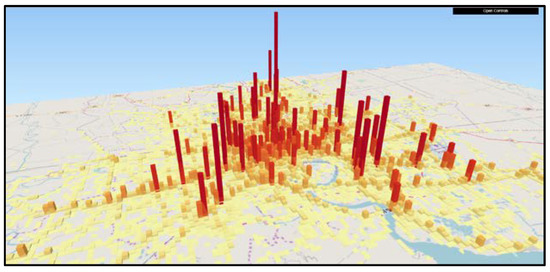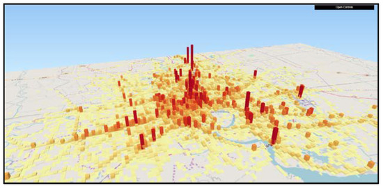 As taxis services are operational throughout the city, spatial and temporal information from these vehicles can be an asset for governing different aspects of urban management. Information, as such, could contribute mainly to helping make better decision-making processes at both government and local level. Having said this, the constant advancement of collecting moving trajectory data in space and time has opened up the possibility of a wide range of study in the field of spatial information science [4]. One of the primary technologies for retrieval of information of various traffic data is from stationary equipment, like loop detectors, for automatic vehicle identification. However, they are limited to specific sections of road. On the contrary, a probe car, also known as a probe vehicle or floating car, utilizes the running vehicles to gather various traffic information, and has been an emerging ITS technology for modeling vehicle behavior [5,6,7]. Big cities, like New York and Beijing, have taxis already equipped with GPS sensors that collects spatial and temporal data to a data center to be processed to extract traffic information [8]. The taxi driver mobility intelligence is an essential factor to maximize both profit and reliability within every possible scenario, and the knowledge about the service can be an advantage for the driver [9]. However, to understand such stochastic dynamics of taxi behavior, micro-level simulation models are required, which can be further analyzed for optimization of taxi services by adjusting parameters like demand, supply, or altering dispatching algorithm [10].