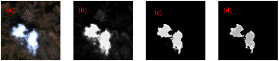 - Wu, W.; Luo, J.; Hu, X.; Yang, H.; Yang, Y. A Thin-Cloud Mask Method for Remote Sensing Images Based on Sparse Dark Pixel Region Detection. Remote Sens. 2018, 10, 617. [Google Scholar] [CrossRef]