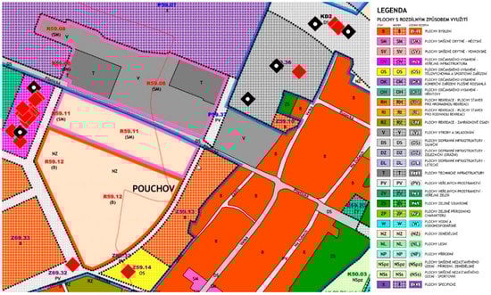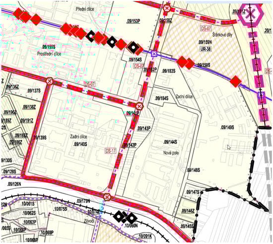 For this reason, authors suggested using the new symbology that has been created in cooperation between Palacký University in Olomouc and the Regional Authority of the Olomouc Region (see [3,17] for details). The authors considered four aspects of symbology creation: users, cartographic correctness, established convention, and the use of a data model. The advantage of the use of this standardized symbology is that urban plans in different districts look uniform and can be compared. This symbology is currently in use in seven of the eleven districts in the Olomouc region.
