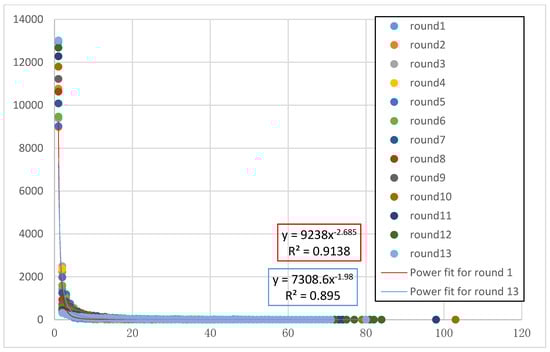 - Clauset, A.; Shalizi, C.R.; Newman, M.E.J. Power-Law Distributions in Empirical Data. SIAM Rev. 2009, 51, 661–703. [Google Scholar] [CrossRef]