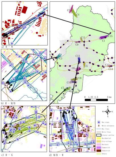 - Guo, D.S.; Zhu, X.; Jin, H.; Gao, P.; Andris, C. Discovering spatial patterns in origin-destination mobility data. Trans. GIS 2012, 16, 411–429. [Google Scholar] [CrossRef]