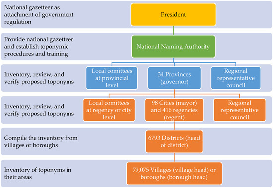 Organizational structure of public authorities for the standardization of toponyms in Indonesia.