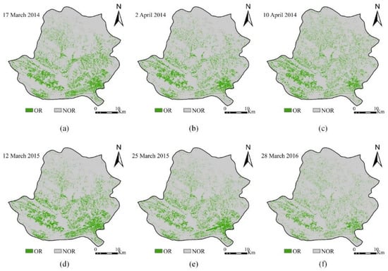 | Reference | Objective | Extracting Approach for OR | Study Area | Phenology Stage |
