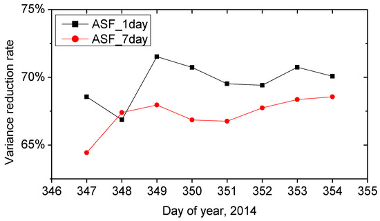 - Recalculating the residuals with the parameters being fixed to their daily average values and low-pass filtering the recalculated residual time series;