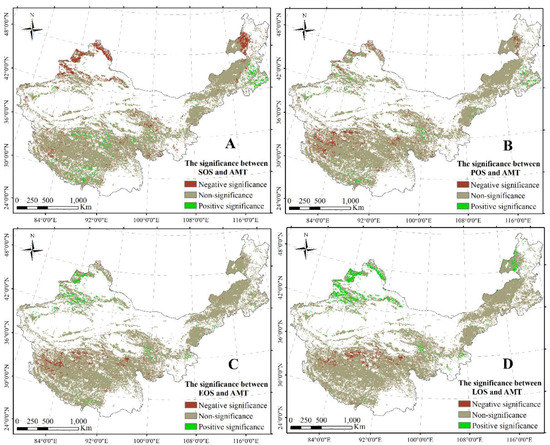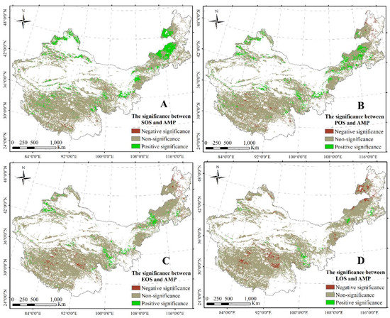 3.1. Dynamics and Relationships of Plant Phenology, AMT, and AMP across China’s Grasslands