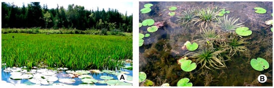 | Floating-leaved vegetation | Plants whose leaves float flat on the water surface, e.g., N. odorata, N. variegata, B. schreberi |
