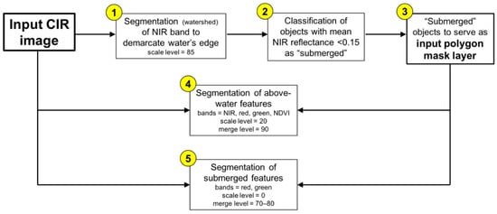 Chabot D, Dillon C, Shemrock A, Weissflog N, Sager EPS. An Object-Based Image Analysis Workflow for Monitoring Shallow-Water Aquatic Vegetation in Multispectral Drone Imagery. ISPRS International Journal of Geo-Information. 2018; 7(8):294. https://doi.org/10.3390/ijgi7080294