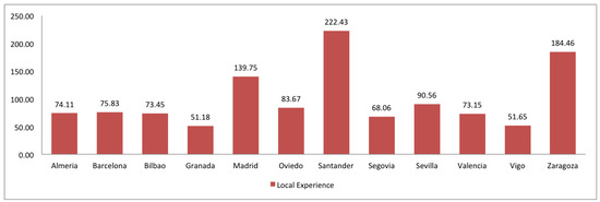 The quality is also evaluated in terms of the average number of versions of the entities and the local/global experience of contributors. With regard to version average, the study reveals that it ranges from 2.02 (Zaragoza) to 2.49 (Oviedo). Let us remark that in OSM, for nodes, each geometry and tagging change results in a new version. However, for ways, only edits that change the referenced nodes (e.g., deleted or added node to the way), and tag changes result in new version numbers.