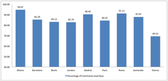 Conformance to commonly used keys (see Figure 22) can be consider in Spain similar (or even better) to most of European cities. Conformance to commonly used combinations of keys (see Figure 23) can be also considered similar to most of European countries, where Santander has a lower rate in the case of tourism entities.