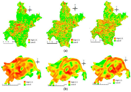 3.1. Analyses of the Temporal and Spatial Features of Landscape Metrics