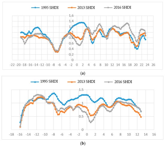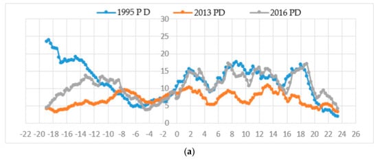 3.3. Spatial and Temporal Evolution of the Development Direction Gradient