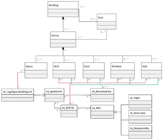 The main idea for this paper was developed by L.K.; J.S. (Johannes Scholz) and M.M. Major parts have been written by L.K., who also did revisions, tables and coordination between all authors. J.S. (Johannes Scholz) contributed his knowledge on production environments and graph-based models in Section 2.2 and Section 4.3, sketched the final UML model of the core model and revised all other sections. B.V., M.M. and J.S. (Josef Strobl) gave advice about the paper structure, the extraction of the data and on the models and die major revisions on all sections. B.V. and C.A. contributed to the discussions on the intermediate models and worked on some of the figures. A.R. and B.A. contributed their sophisticated knowledge on 3D cadasters and provided the second use-case (Section 4.4.) as well as the UML model of their extension. All authors did revisions and checking of all sections.