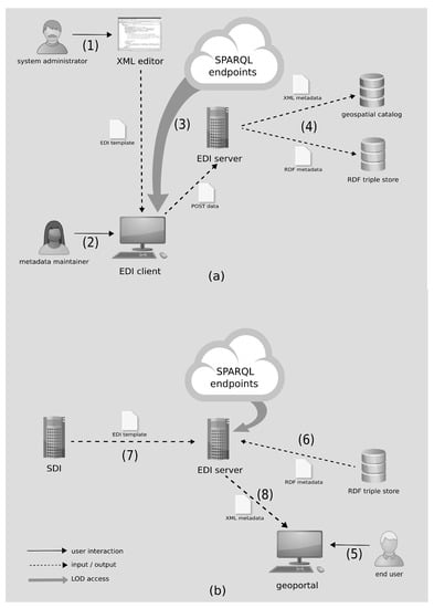 Figure 3b, 5), the EDI server retrieves the RDF metadata (