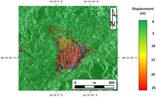 The aim of this paper is to provide a comprehensive overview of the potential use of the DIC technique in landslide analyses. Therefore, several analyses have been conducted on a single well- constrained landslide for which several image datasets are available; i.e., the landslide that occurred on 3 December 2013 in Montescaglioso (Basilicata, southern Italy) [38,41,42,43]. Specifically, LANDSAT 8 OLI-TIRS images, high-resolution airborne optical photos, digital terrain models (DTMs) and COSMO-SkyMed SAR images have been used to derive and validate the landslide displacement field.