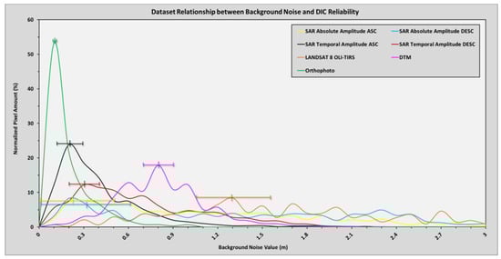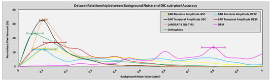 Because the available processed datasets are characterized by regular and repetitive temporal resolutions, an in-depth study of the background noise with a high degree of reliability was undertaken for the entire imagery dataset. Furthermore, specific background/instrumental errors were assigned based on the collecting sensor (CSK, LANDSAT 8 OLI-TIRS, airborne LiDAR and aerial camera).