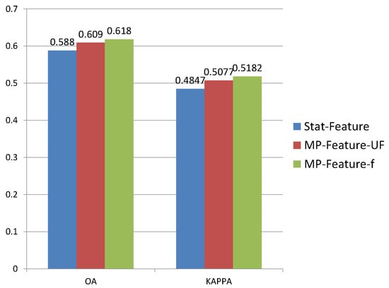 According to results shown in Figure 8, MP-Feature improved the classification by 3% in OA. Furthermore there was almost no difference in the performance between MP-Feature-UF and MP-Feature-F.
