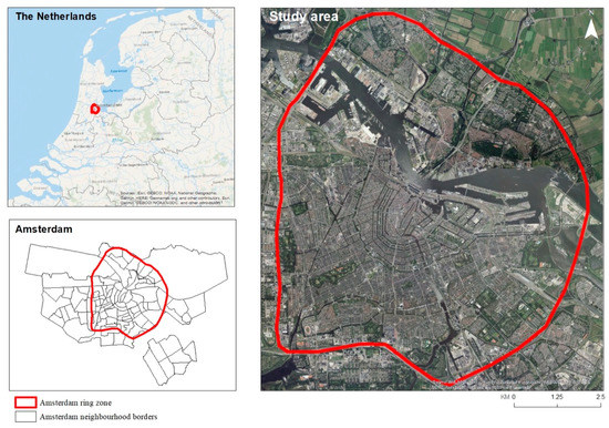 Study area: Amsterdam within the ring zone. Data sources: [38,39]. Design by authors.