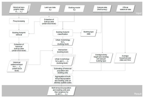 This section describes the proposed framework for mapping the dynamics of population and dwellings by means of a spatiotemporal analysis of the urban morphology. Data sources and methods as well as the associated processing steps will be presented in detail.