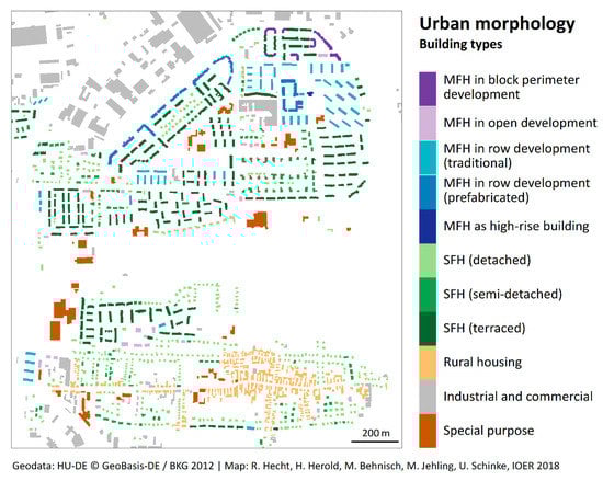 - Hecht, R. Automatische Klassifizierung von Gebäudegrundrissen: Ein Beitrag zur Kleinräumigen Beschreibung der Siedlungsstruktur; Rhombos-Verl.: Berlin, Germany, 2014; Volume 63, ISBN 978-3-94-410163-7. [Google Scholar]