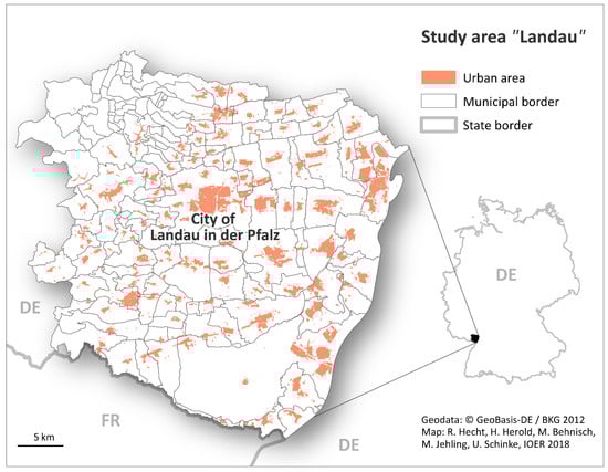 Administrative structure and urban area of the study area “Landau” and location in Germany.