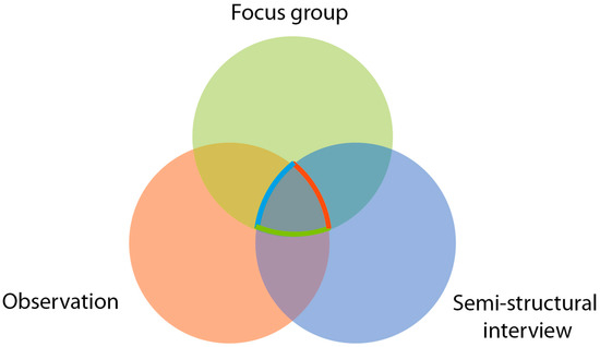 Data collection in our IPA study implemented triangulation [79,80] from three research techniques (Figure 5). Using three different and complementary research techniques for data collection makes it possible to harvest the strongest aspects of all the techniques and mutually compensate their weak spots.
