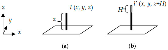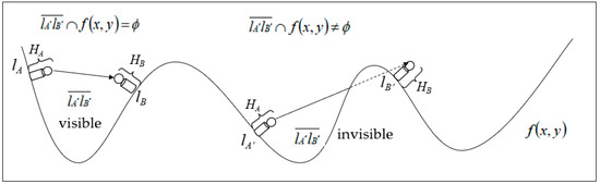 is the line between two points: lA’(xA, yA, zA + HA) and lB’(xB, yB, zB + HB), where lA’(xA, yA, zA + HA) is a point in three-dimensional space, and its height is higher than point lA (xA, yA, zA) by HA (Figure 2).