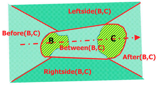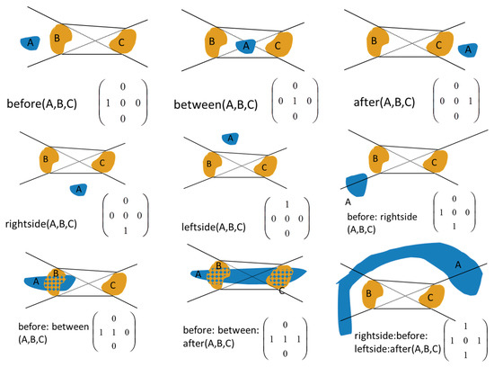 - Clementini, E.; Billen, R. Modeling and computing ternary projective relations between regions. IEEE Trans. Knowl. Data Eng. 2006, 18, 799–814. [Google Scholar] [CrossRef]