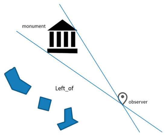 An example of deictic frame of reference can be illustrated as follows (see Figure 8). Let us suppose that a tourist is walking in an urban context and looking toward a monument he(she) asks what the buildings are on his/her left side. Then the corresponding SQL query would be: