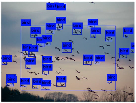 In YOLO, a single neural network is used to simultaneously predict multiple object bounding boxes and the corresponding class probabilities directly from image pixels (Figure 2). Redmon et al. [] compared the mean average precision (mAP) and frames per second (FPS) of YOLO to other detection algorithms using validation data sets from PASCAL VOC 2007. After evaluating the reported average precision and efficiency of other object detection algorithms including 30Hz DPM [], Fastest DPM [], R-CNN Minus R [], Fast R-CNN [], Faster R-CNN VGG-16 [], Faster R-CNN ZF [], we decided to use YOLO to detect birds in images.