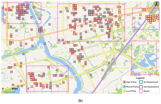 Finally, the entire record will be “null” in the final state of matrix P, which indicates that all the symbols are shown on the map and there are no conflicts among them (Figure 6c).